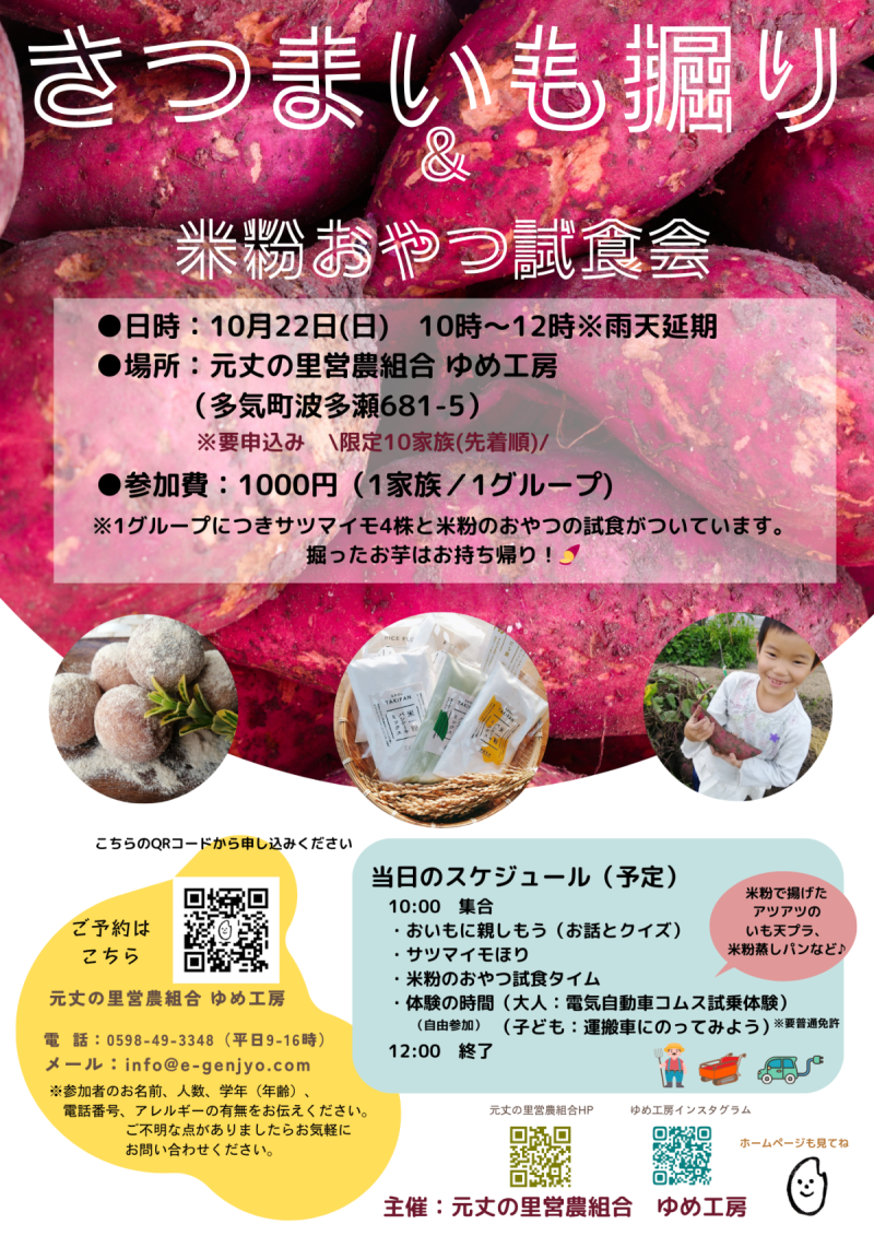さつまいも掘りの後はゆめ工房にて米粉をつかったおやつの試食もしていただけます。